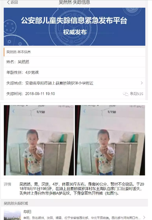 最新消息:阜阳4岁走失男孩已找到,但是……