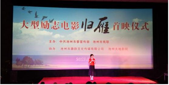 电影《归雁》是池州市首部取材本土励志故事影片,以池州青年李雁雁的真实经验为原型编写,报告了李雁雁降服眼睛失明的重重坚苦,追梦圆梦,成为亚洲第一位医学博士后,回归故国、报效老家的励志故事。影戏《归雁》在池州全景拍摄,画面质朴唯美,故事动听至深,揭示了李雁雁身残志坚、自强不息的坚实品质,孜孜以求、追梦圆梦的格斗精力和建树老家、报效故国的爱国情怀。
