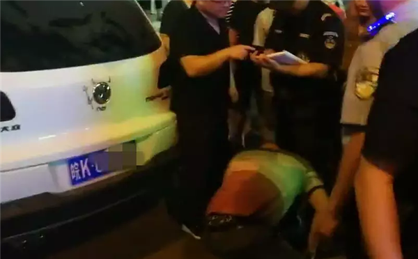 颍泉公安分局巡防大队民警到达现场后发现,一名男子趴在一辆白色轿车前,不远处还有一名男子趴在地上,明显是喝多了。